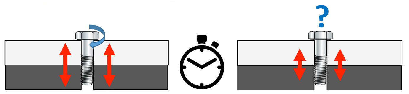 La scelta della corretta strategia di serraggio garantisce che il giunto sia stato avvitato secondo le specifiche, ma cosa succede alla giunzione dopo che il serraggio è stato completato rimane un’incognita alla quale bisogna rispondere. Quanto del precarico applicato sarà rimasto all’interno della giunzione?